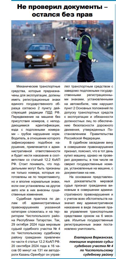 | В газете "Суд да Дело в Татарстане" опубликована статья помощника мирового судьи Е. Вержанской. |