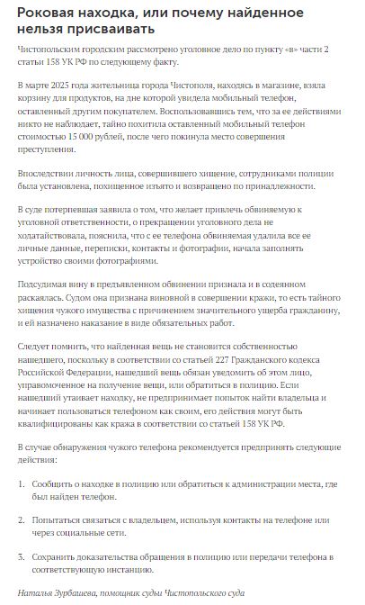 В новом номере газеты "Суд да Дело в Татарстане" опубликована статья помощника судьи Чистопольского городского суда Республики Татарстан Зурбашевой Н.О.![]() |