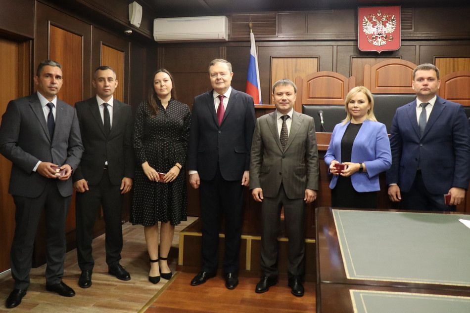 Председатель Верховного Суда Республики Татарстан Азат Гильмутдинов и Главный федеральный инспектор по Республике Татарстан Виктор Демидов вручили удостоверения судьям, назначенным Указом Президента Российской Федерации №565 от 16 августа 2025 г. Удостоверение получил, в том числе, судья Чистопольского городского суда Александр Тякмаев. ![]() |
