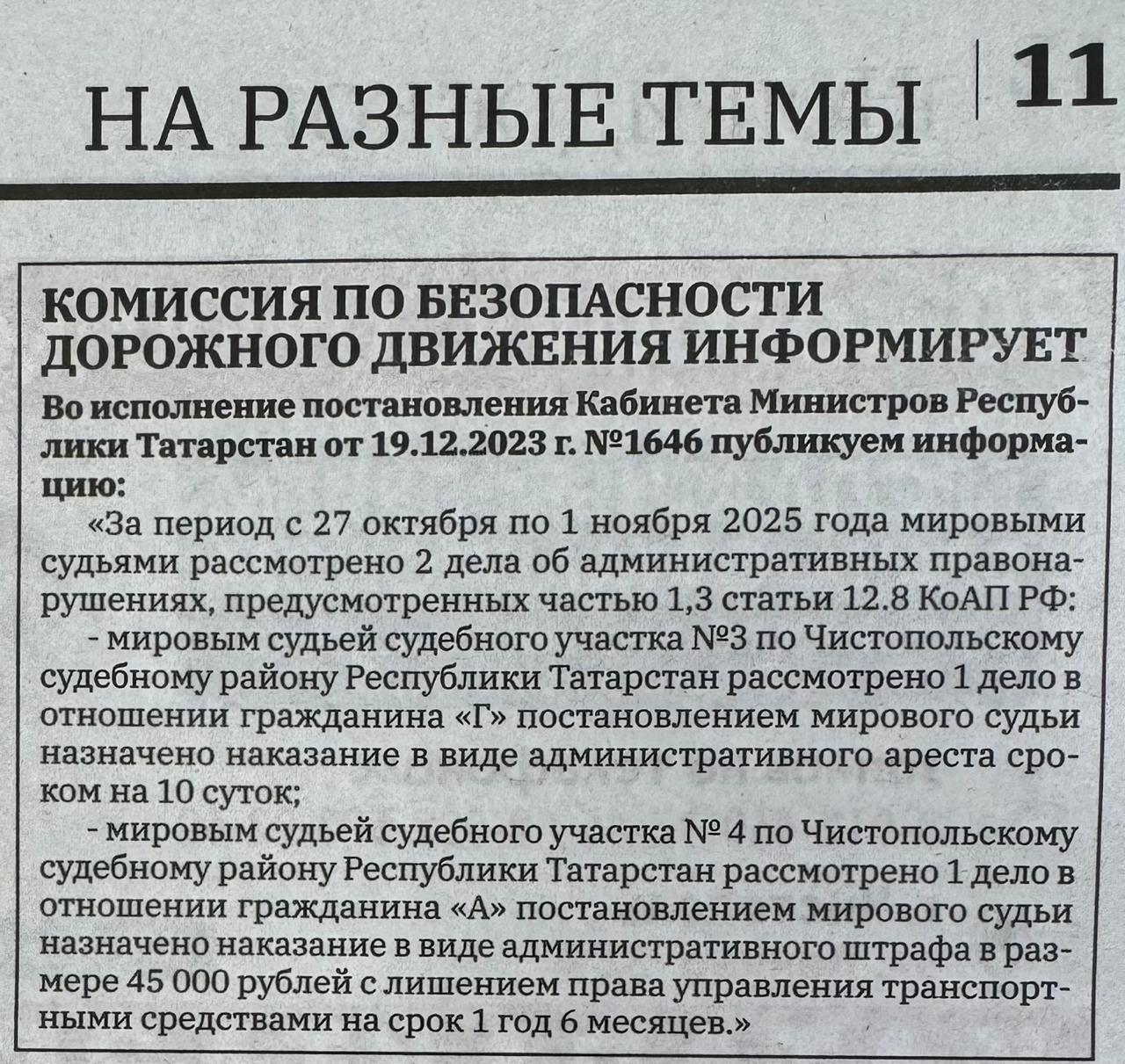 В газете «Чистопольские известия» опубликована статья о рассмотренных мировыми судьями делах.![]() |