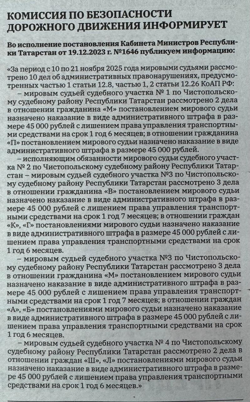 В газете «Чистопольские известия» опубликована статья о рассмотренных делах.![]() |
