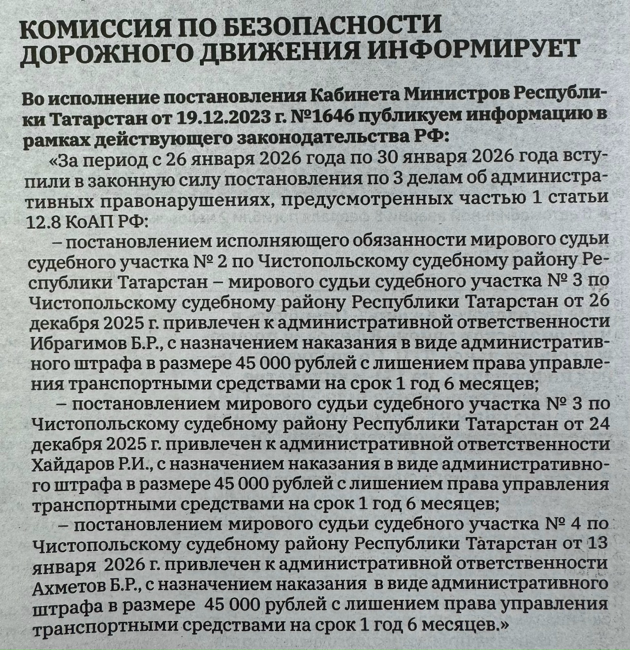 В газете «Чистопольские известия» опубликована статья о рассмотренных мировыми судьями делах.